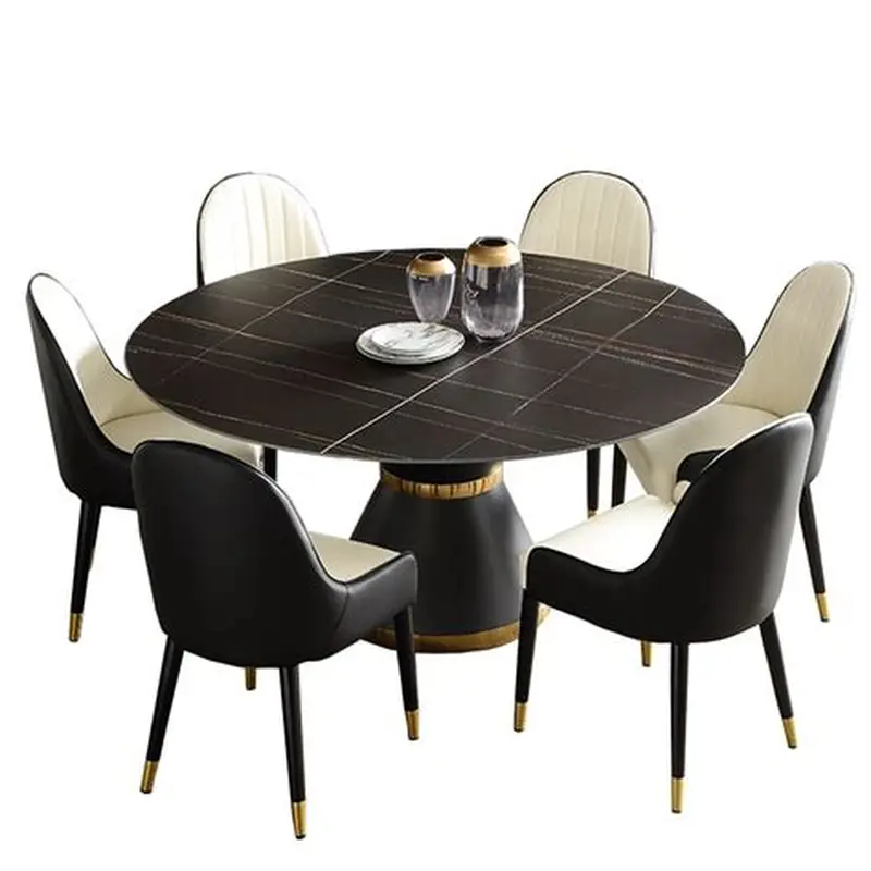 Modern Black Marble Dining Set with Rotating Lazy Susan