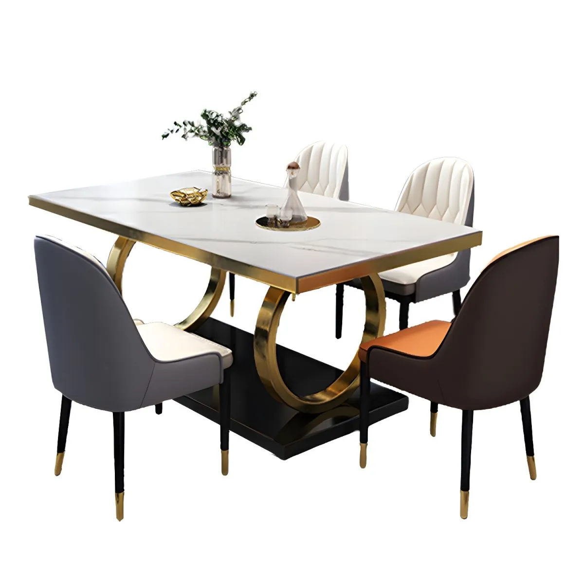 Contemporary Marble-Top Dining Table with Gold C-Frame Base